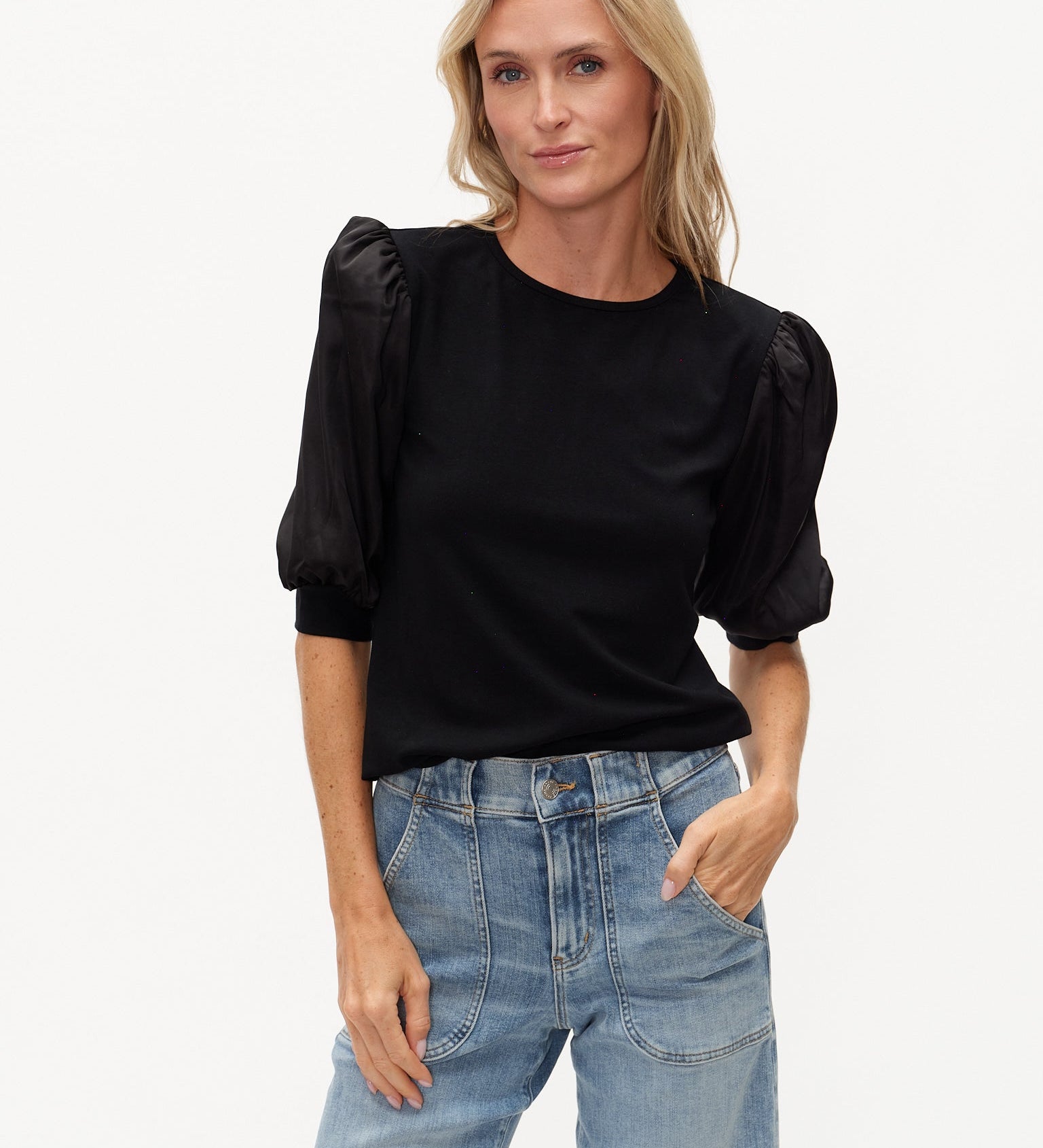Solara Mixed Media Satin Top