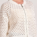 Zip into style with the Aster cardigan. Crochet detailing and a bomber jacket silhouette merge comfort with edge for a uniquely cool layering piece.