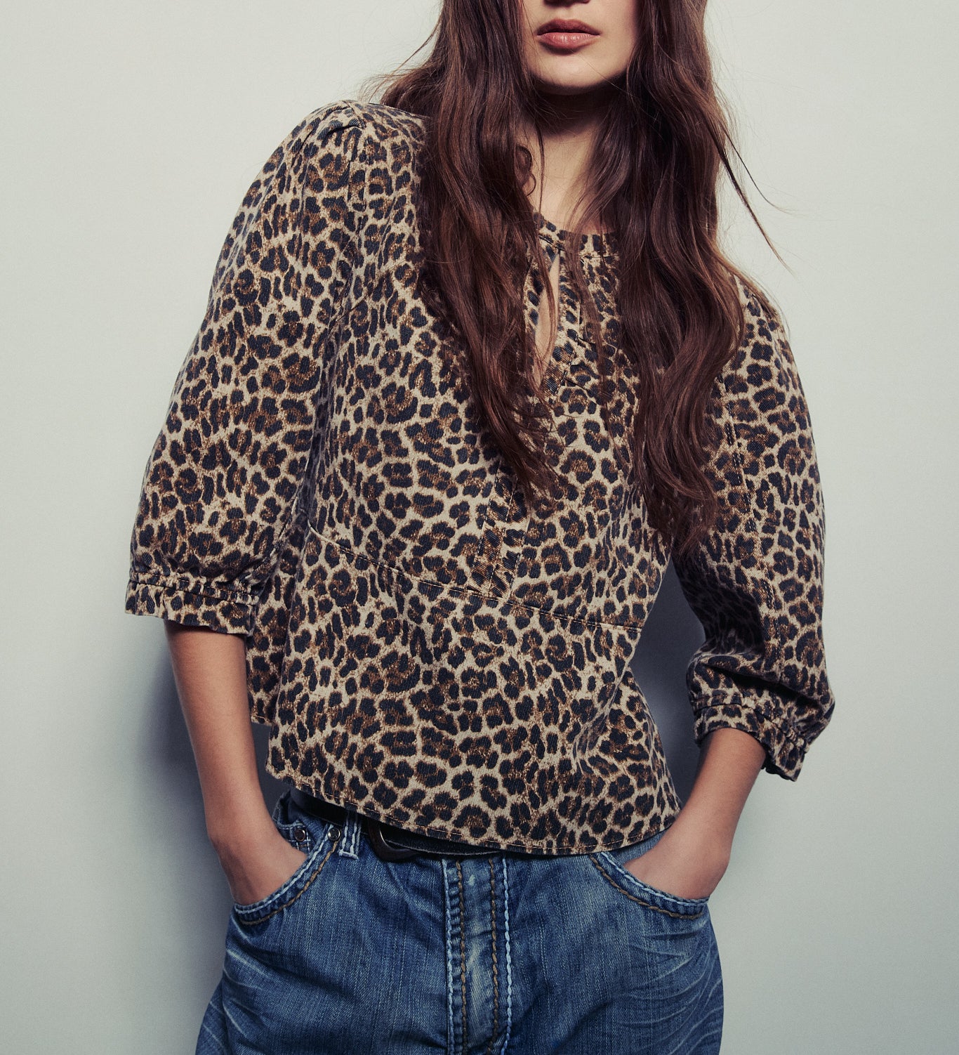 Melissa Nepton MARYGOLD TOP-Beige Animal Print