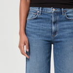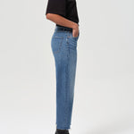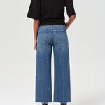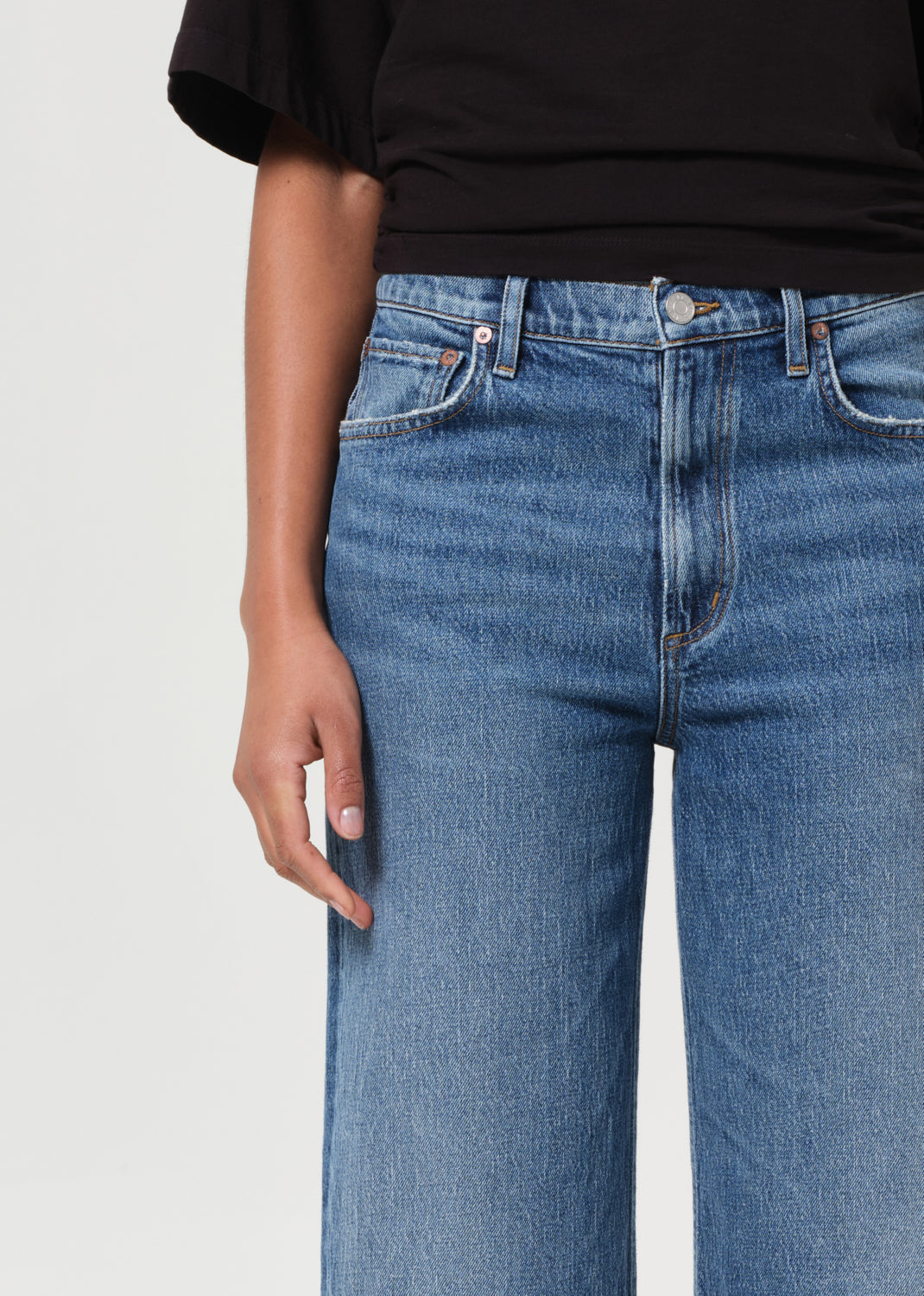 AGOLDE's Ren Jean from the Weightless Collection offer the perfect blend of comfort and style. Made from regenerative cotton, they feature a high-rise waist and cropped wide legs for a relaxed yet flattering silhouette. The lightweight fabric ensures all-day comfort, making them ideal for casual wear. Pair them with a half-tucked tee for a cool, effortless look.