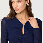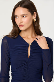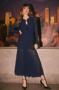 - Garment is intentionally semi-sheer at sleeves and skirt