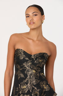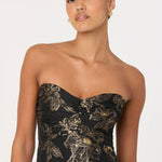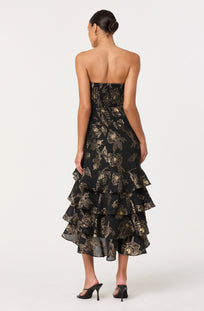 ASTR Marysia Strapless Metallic Floral Midi Dress