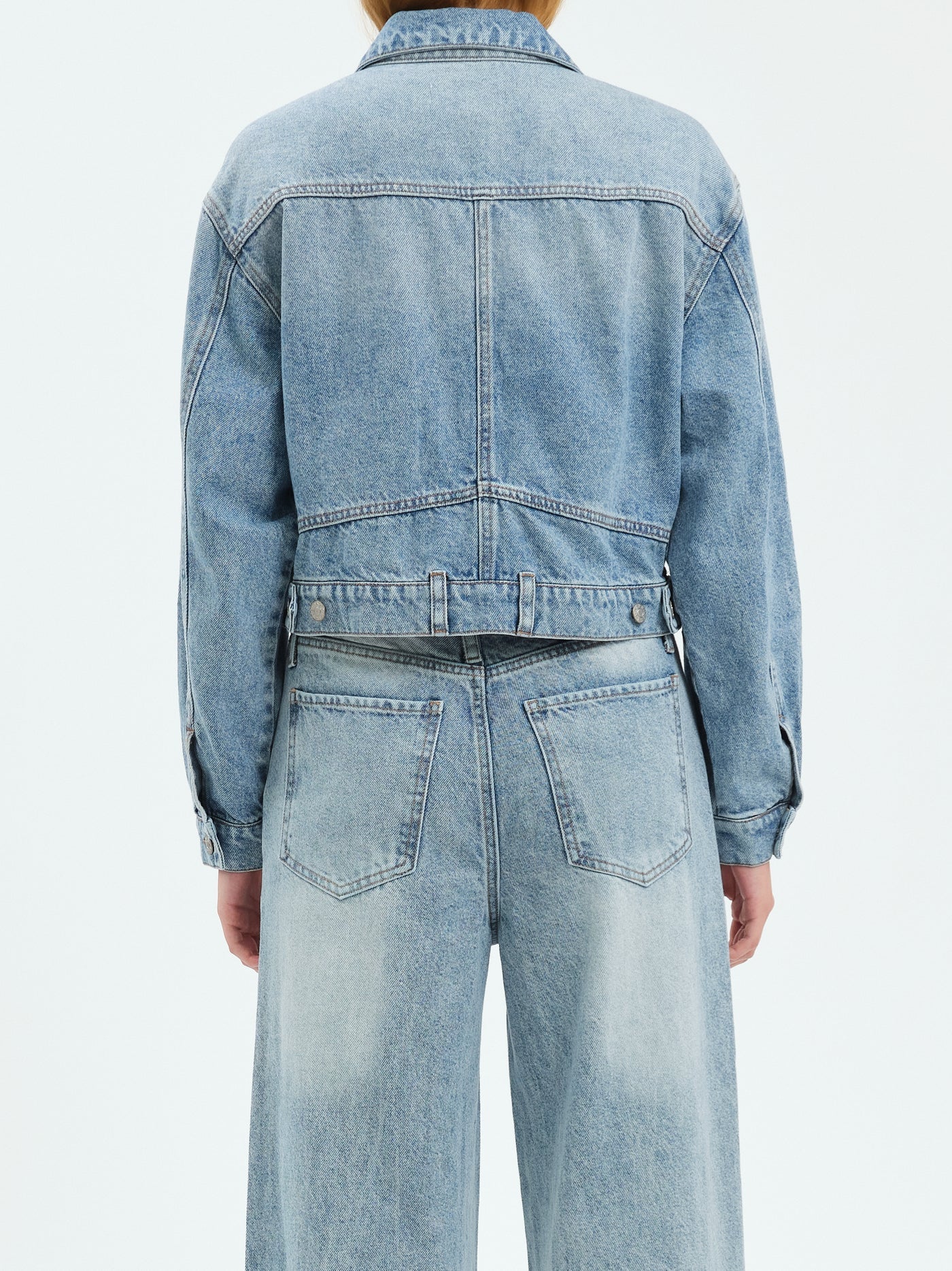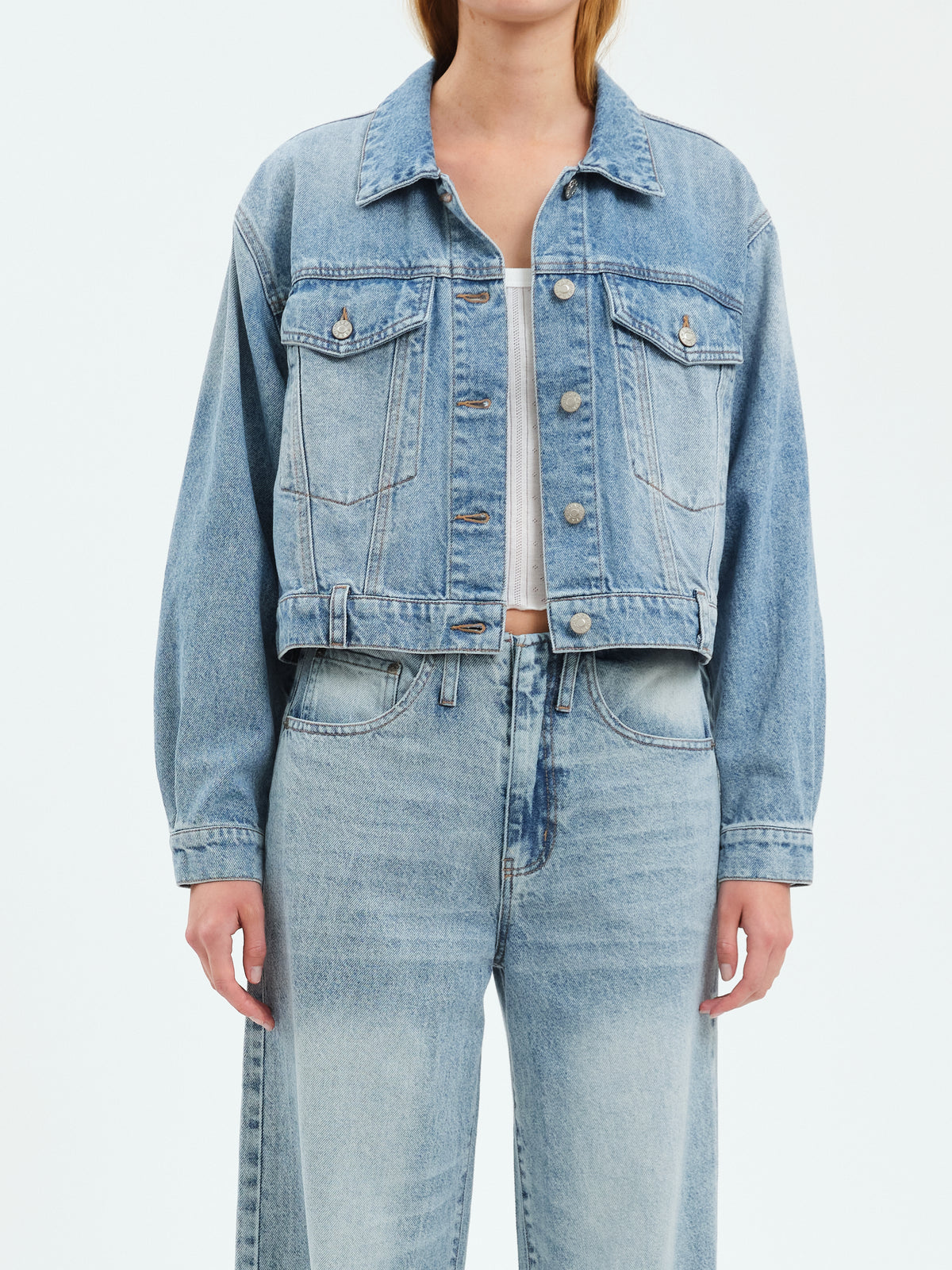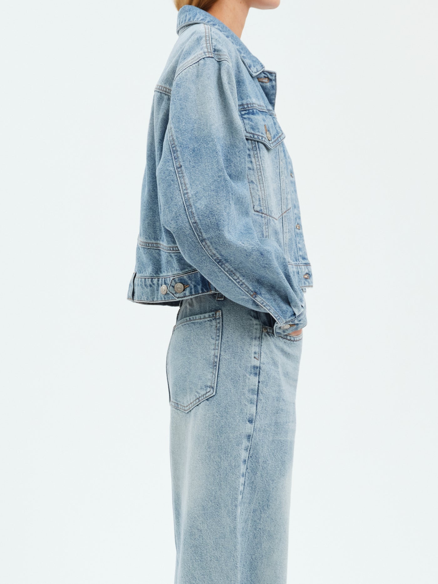 The denim jacket that will became a staple in your closet. With a cropped fit that hits right around your waist, it keeps its structure from 100% cotton and features a versatile medium wash.