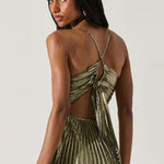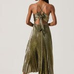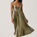 Blythe Metallic Plisse Midi Dress in Black Gold