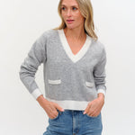 The Libby Sweater features a flattering v-neck and a stylish color block design that elevates your casual wardrobe. Combining comfort with a modern edge, this sweater is perfect for layering or wearing on its own to make a confident, chic statement.