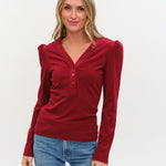 The Emily Top is a must-have long sleeve ribbed piece that effortlessly combines comfort and style. Featuring a flattering V-neckline and bold statement shoulders, it adds a sophisticated edge to the textured fabric while highlighting your natural silhouette.
