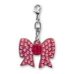 The Pink Bow Charm is a sparkling rhinestone charm with a shiny metal chain. Clip it onto the super cute charm holder and onto your bag for a touch of sparkle. Curate your bag charm collection today!