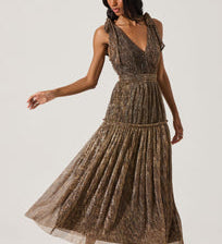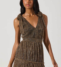 Desma Metallic V-Neck Midi Dress in Bronze