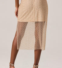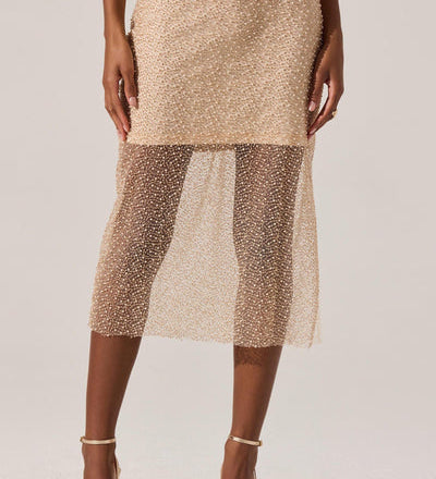 Messina Pearl Embellished Midi Skirt in Champagne