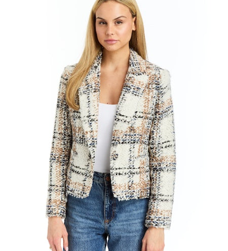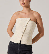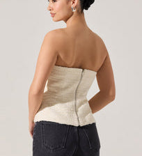 Moina Asymmetrical Strapless Tweed Top in Ivory