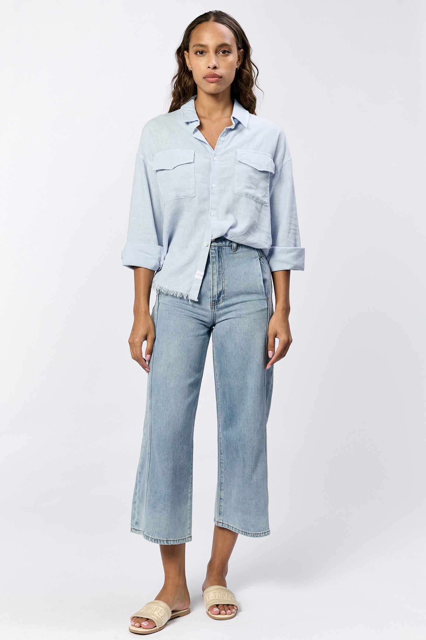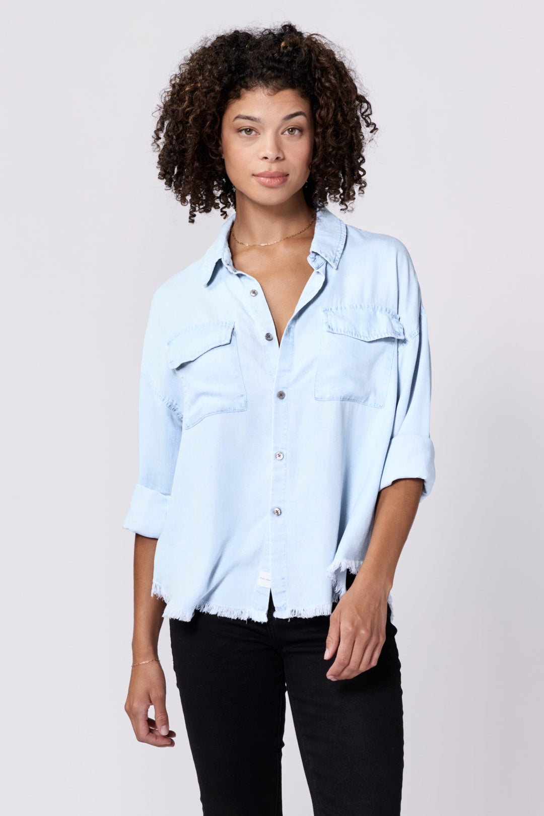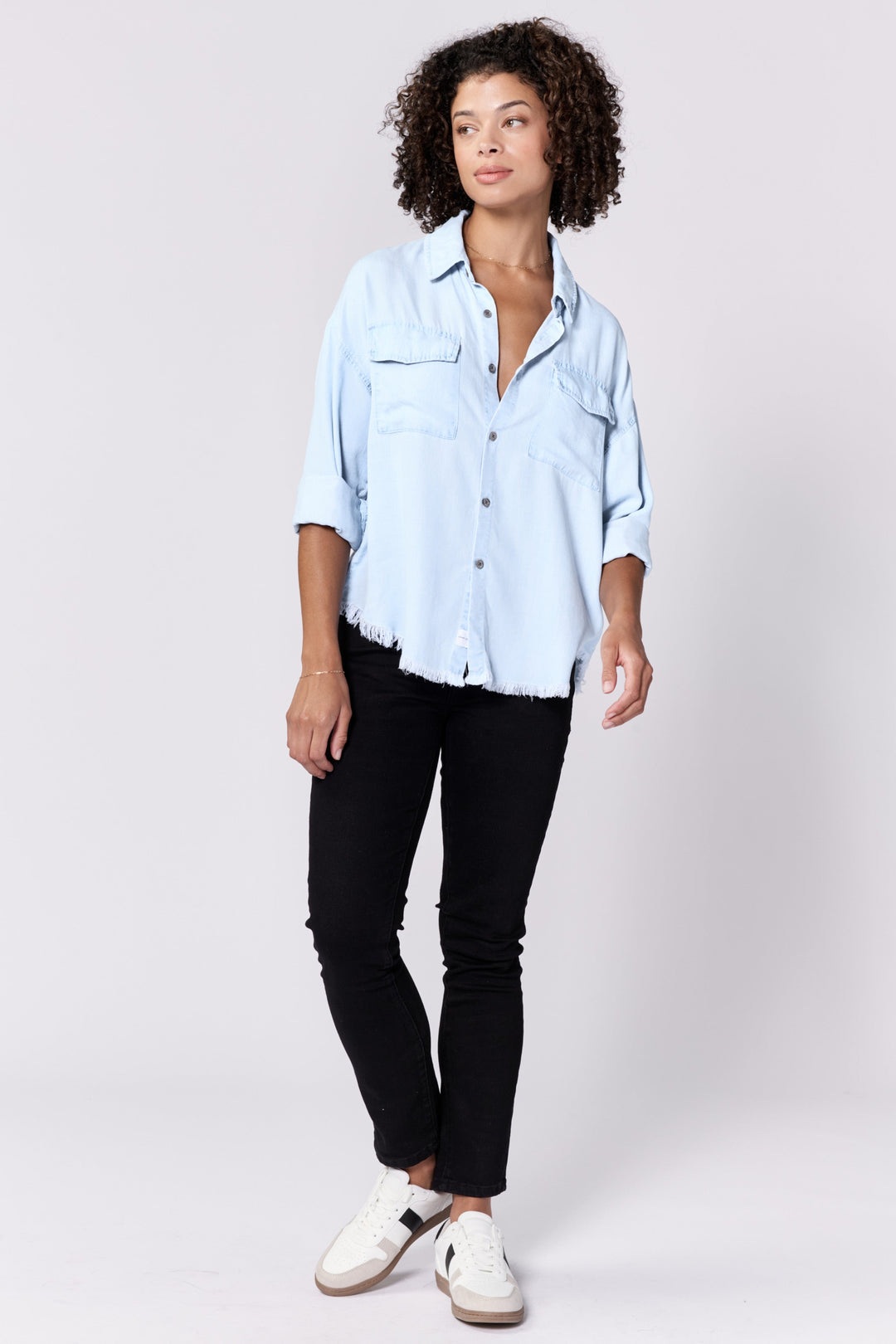 Embrace the perfect blend of style and comfort with the Adrianna button-up long sleeve boxy fit shirt. This piece features a classic button-up design, enriched with fray hem details that add a touch of sophistication to your wardrobe. The breathable & sustainable fabric ensures all-day comfort, while the timeless hue complements any versatile outfit for work or play.