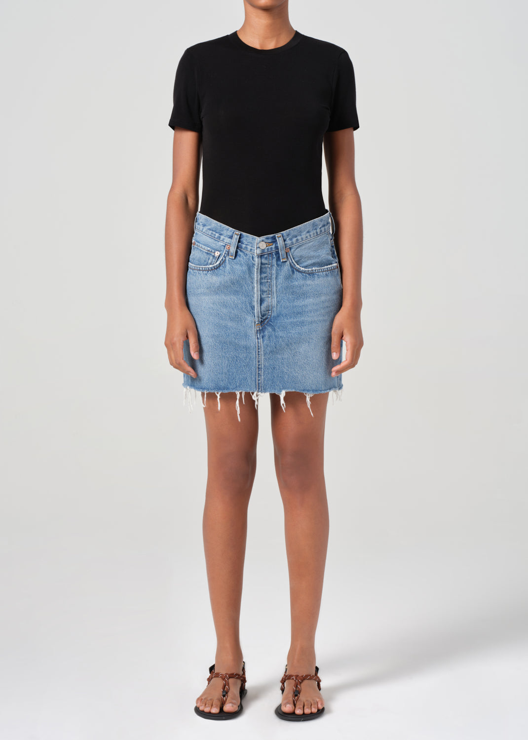 The V-Waist Mini features a sharp, flattering V-shaped waistband that cinches the waist and creates a sleek, structured silhouette. With a clean hem and a relaxed fit, this mini skirt combines modern design with effortless style. Crafted from regenerative cotton, it’s the perfect piece for creating a laid-back yet chic look.