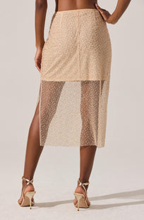 Embellished with delicate pearls and beading, this skirt features a mesh overlay for a daring yet chic night-out look. Perfect for special occasions, especially holiday parties, when paired with its matching top