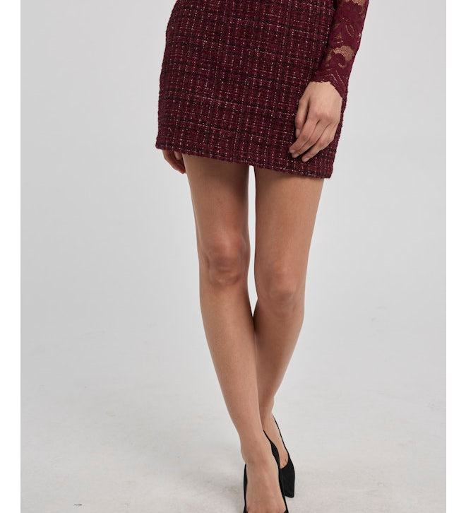 DELACORTE VEGAN LEATHER GUIPURE SKIRT
