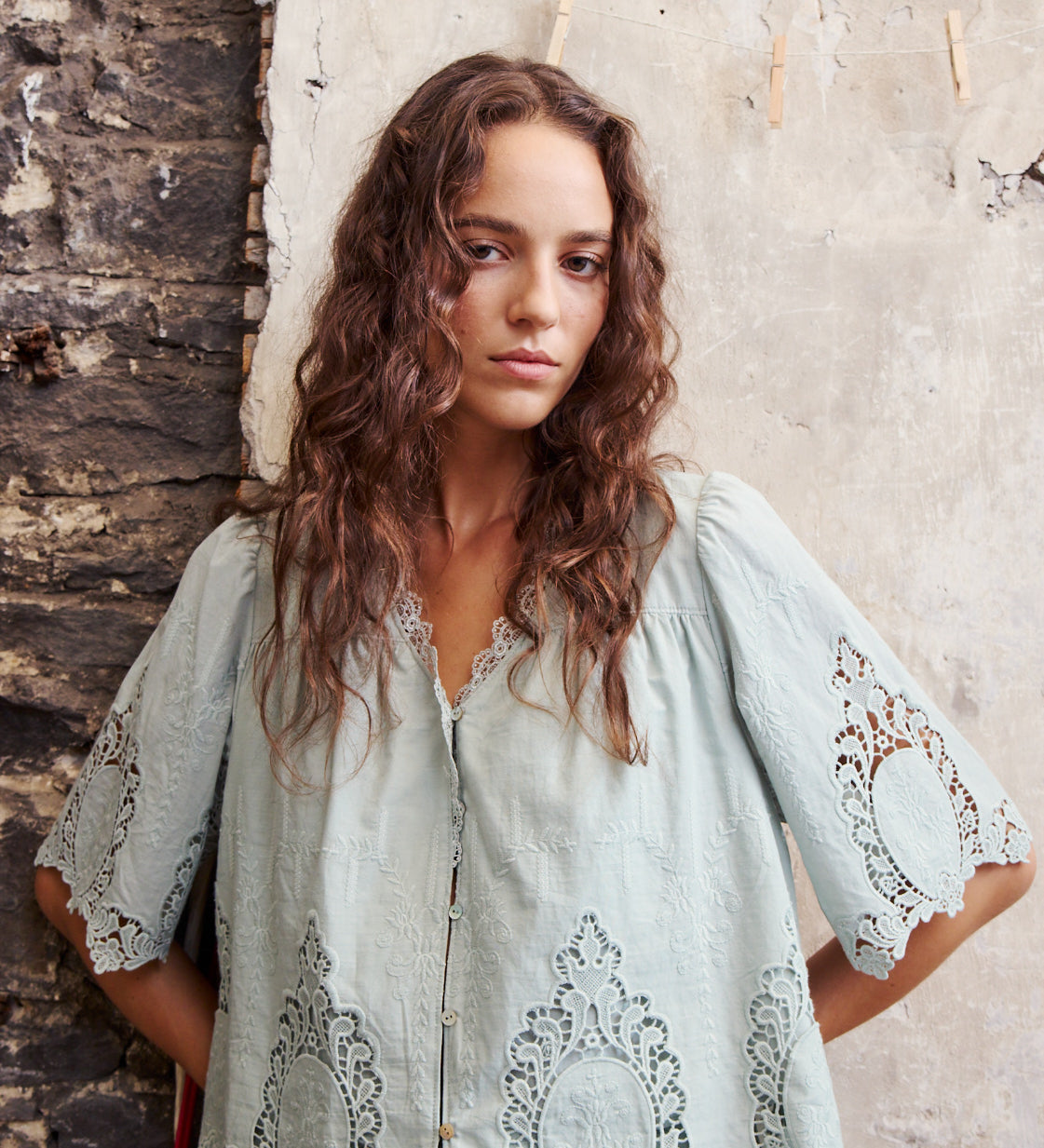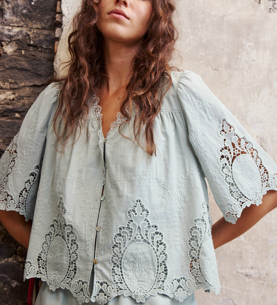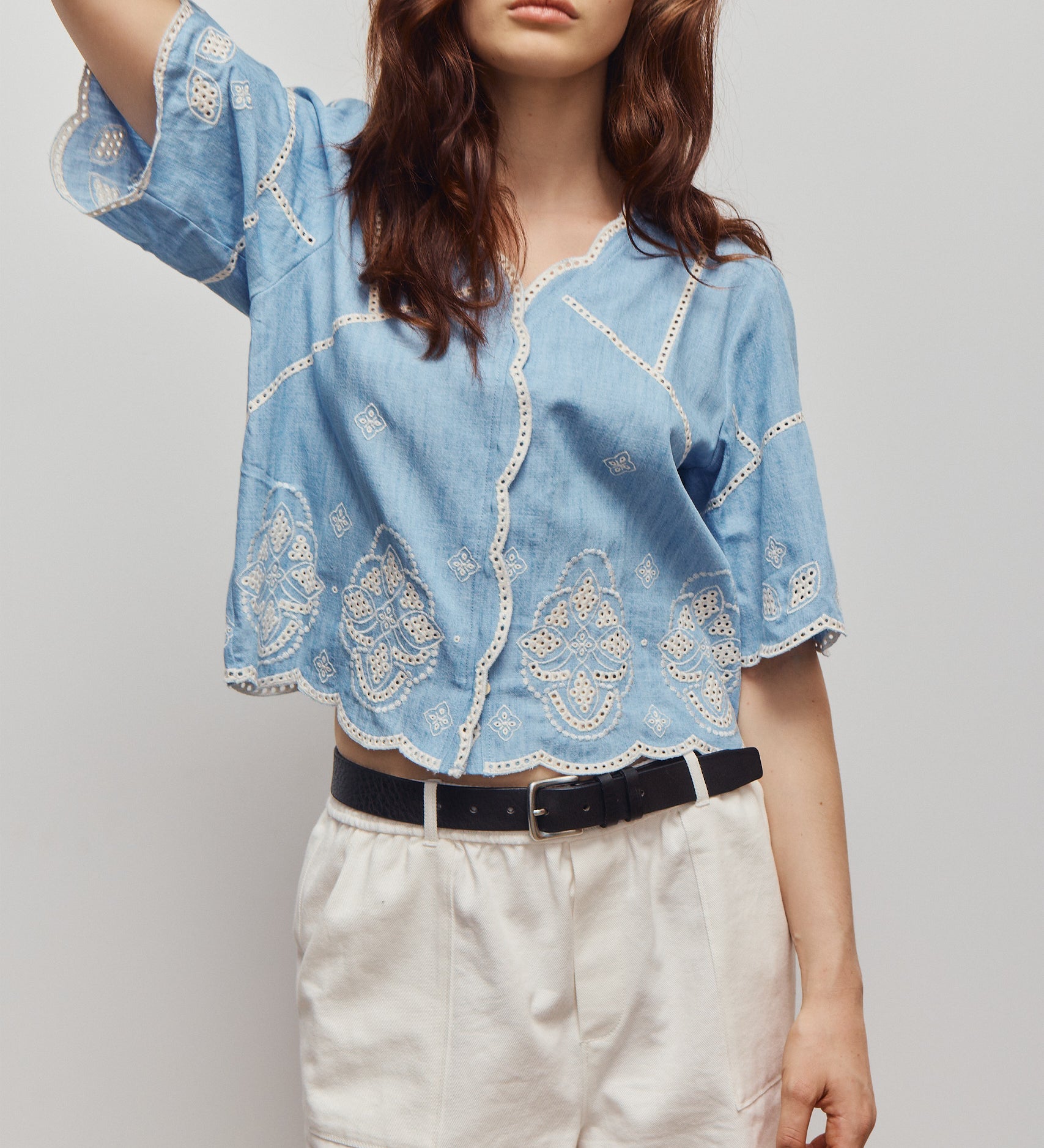 Melissa Nepton Marnie Embroidered Chambray Blouse