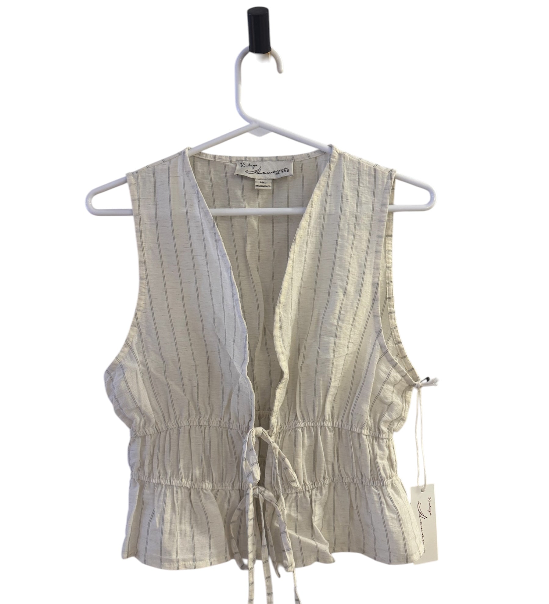 Cream/Black Stripe Linen Tie Front Top