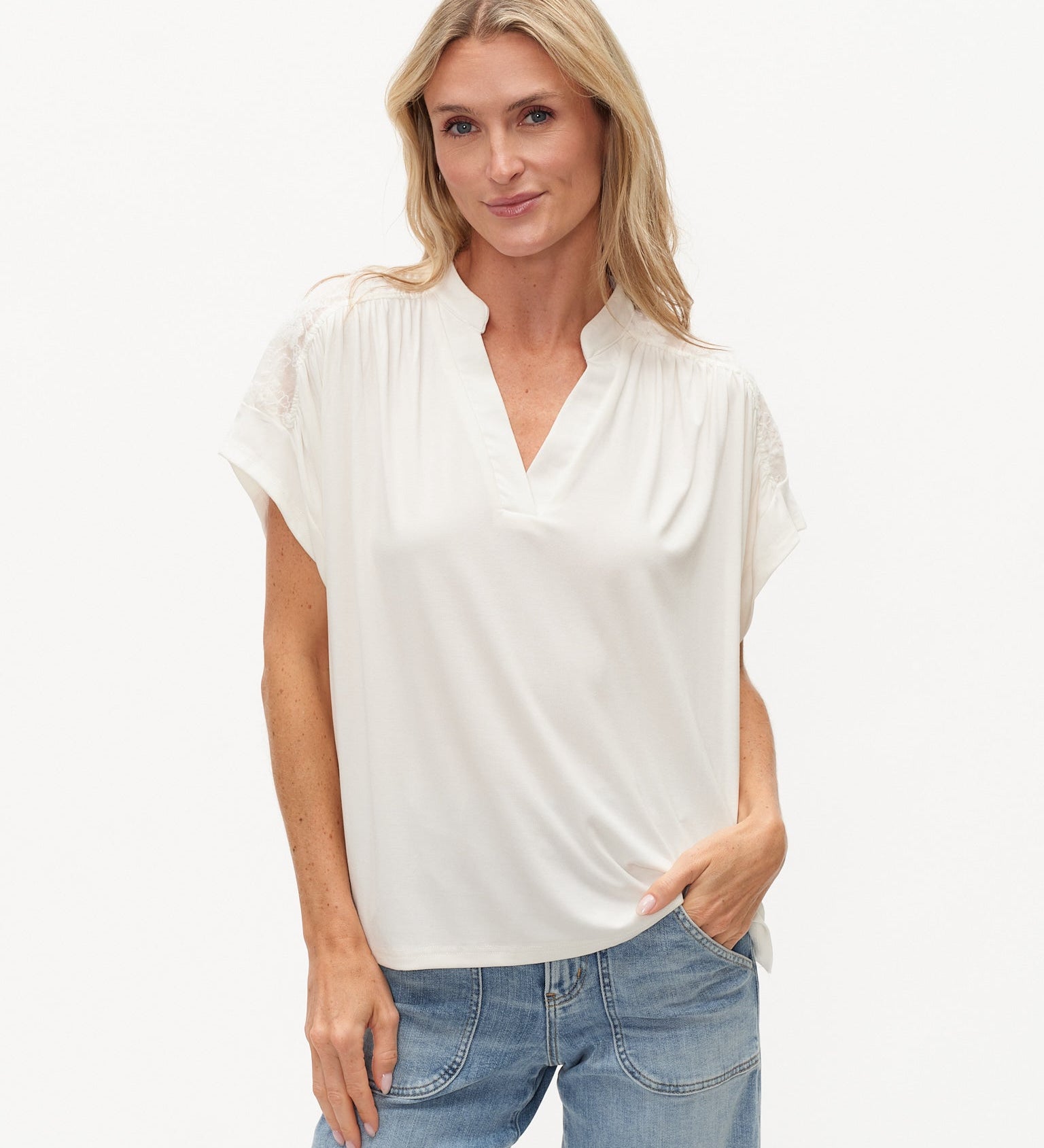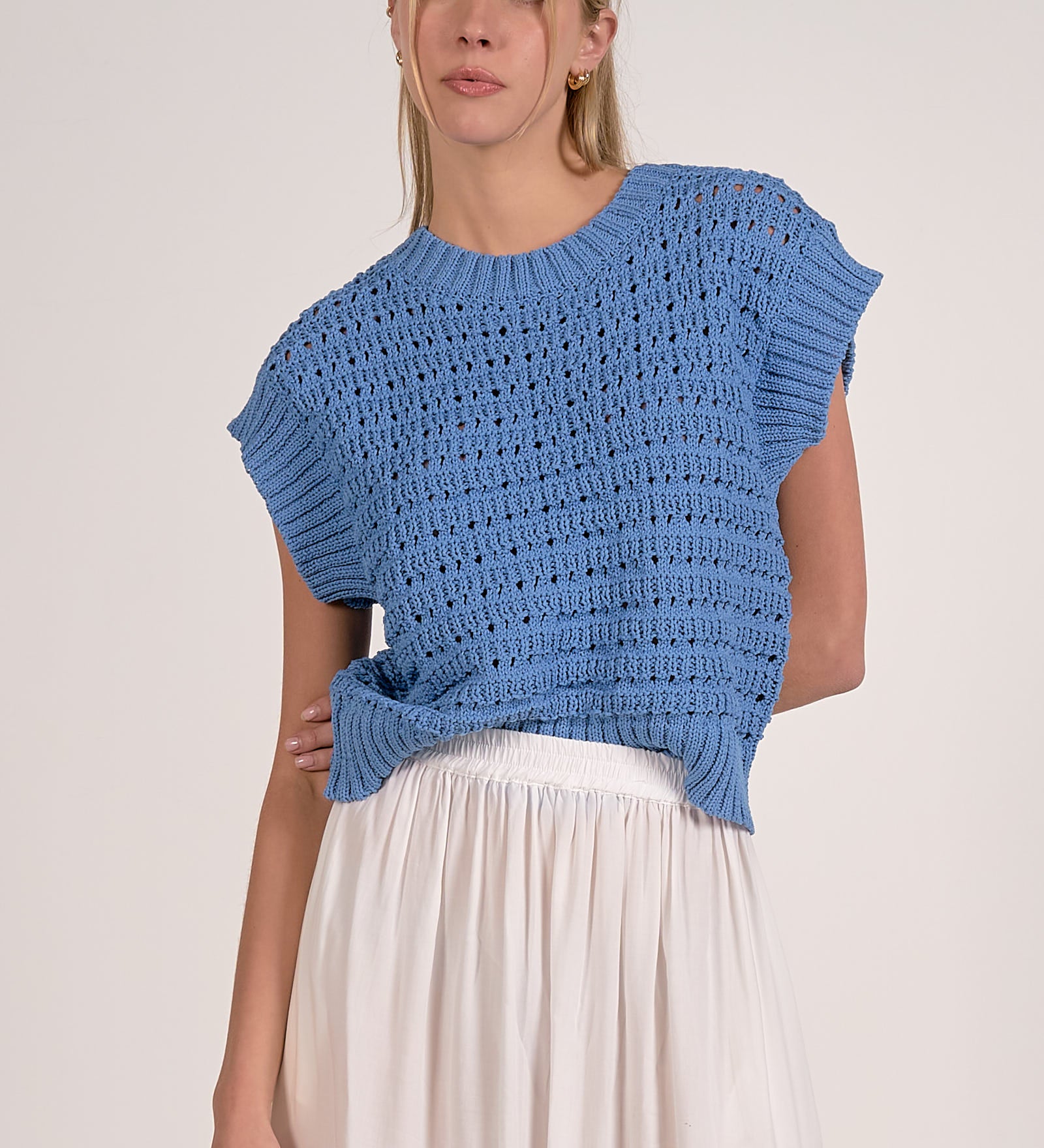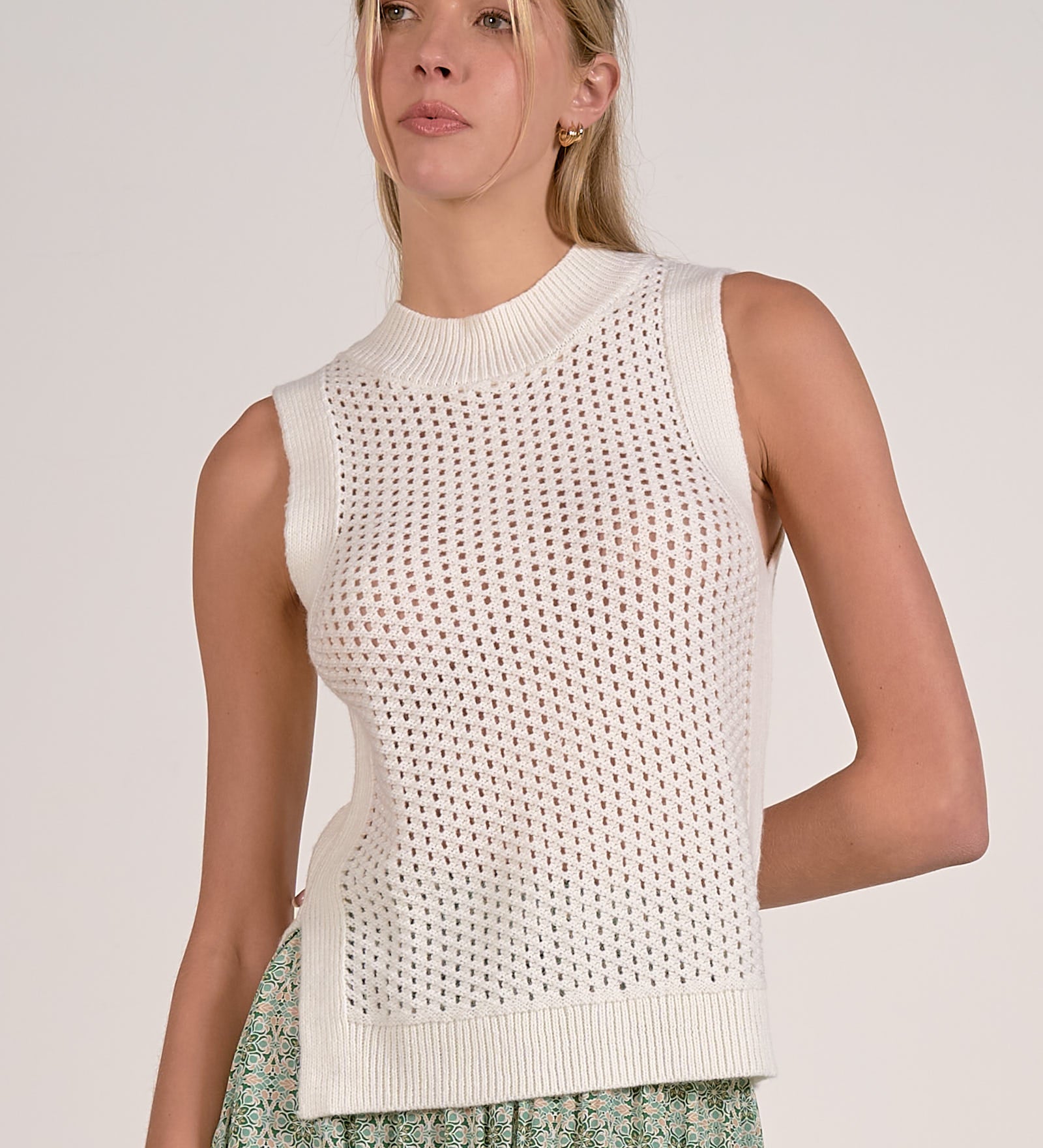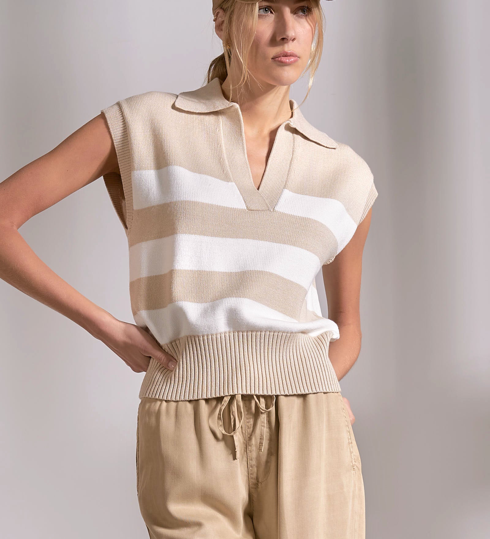 Elan Sweater Sleeveless Collar in Beige Stripe