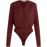 For date night (or any night, really). Our best-selling satin bodysuit--with a front crossover, slim sleeves and a soft drape--in a new, stretchy flat knit. The comfortable snap bodysuit makes it a no-fuss tuck, so it’s effortlessly easy to wear on its own and a favorite look when styled with your go-to denim.