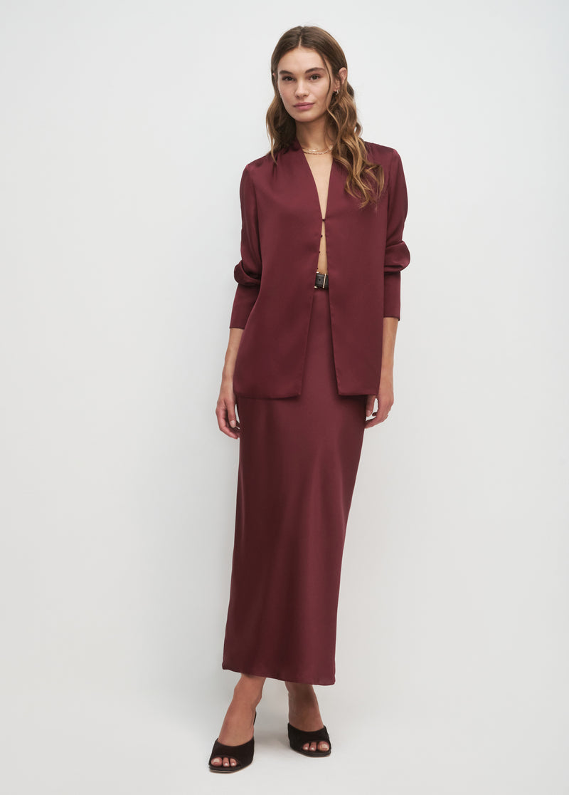 For special occasions. Any occasion, actually. The bias-cut Favorite Skirt in Vino has a high, pull-on waist and a billowy fit that hugs in all the right places. Measuring 34.5" from waistband to hem, it's cut from a soft viscose blend with a delicate feel--and it's super easy to style up or down. (It looks especially effortless with The Amelia Top or a classic tee.)