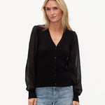 Effortless elegance meets everyday comfort in this Celeste Top. Featuring a flattering v-neckline and button-down front, it's designed for those who value both style and ease. The sheer blouson sleeves add a touch of romantic movement while keeping you cool, making it perfect for layering or wearing solo. Lightweight and airy, this piece transitions seamlessly from office to weekend, delivering versatile sophistication without the fuss.