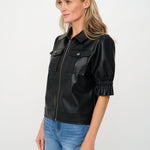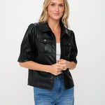 Get ready to be chic and stylish with our Jennifer Jacket! This leather jacket features a button front pocket detail, making it both practical and fashionable plus adds a little edge to any outfit. Don't miss out on this must-have piece!